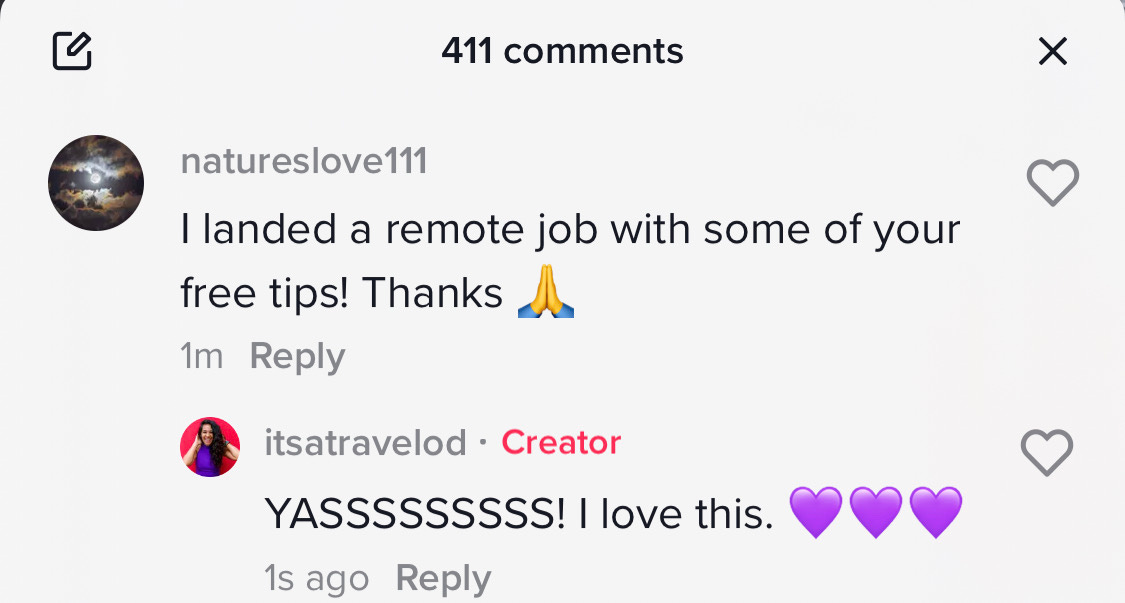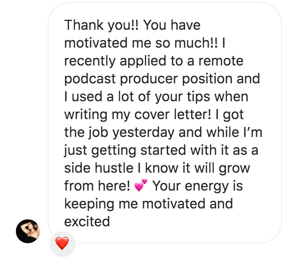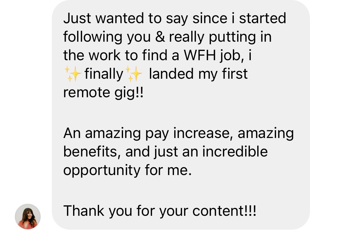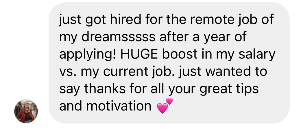 It’s so rewarding for me to see that & that’s why I keep creating free & paid resources to help you get your remote jobs — no matter what stage of your professional journey you’re in.
