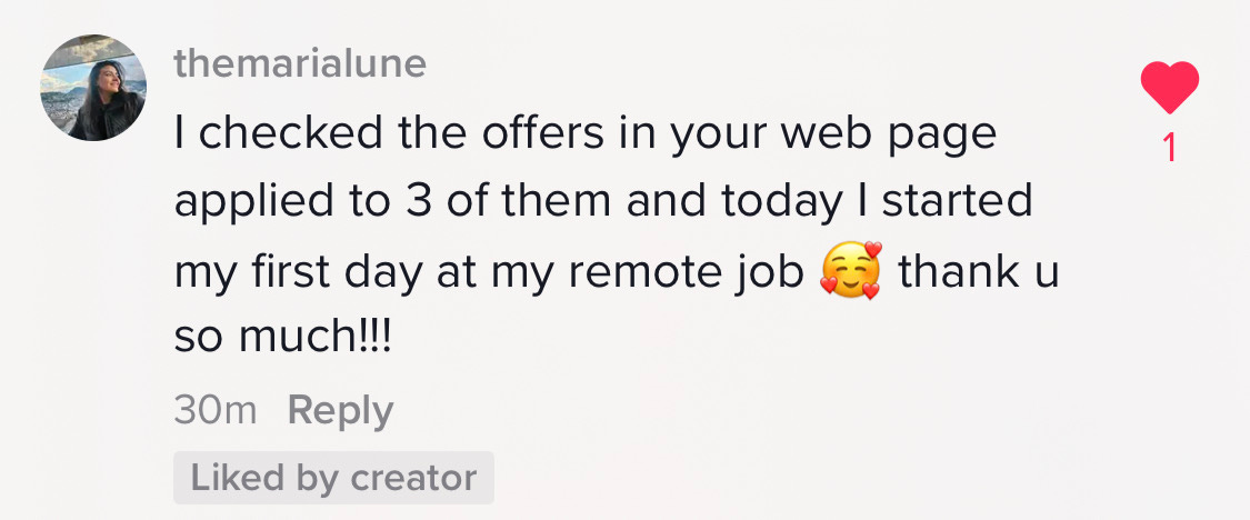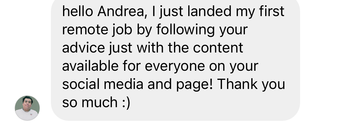 She followed the tips on module 2 of my course ‘Land Your First Remote Job’ & that led her to first remote job.