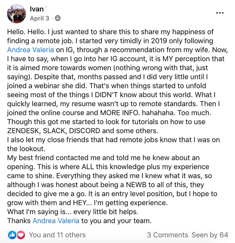 And was able to secure her first remote job which also motivated her to pursuing more online opportunities.