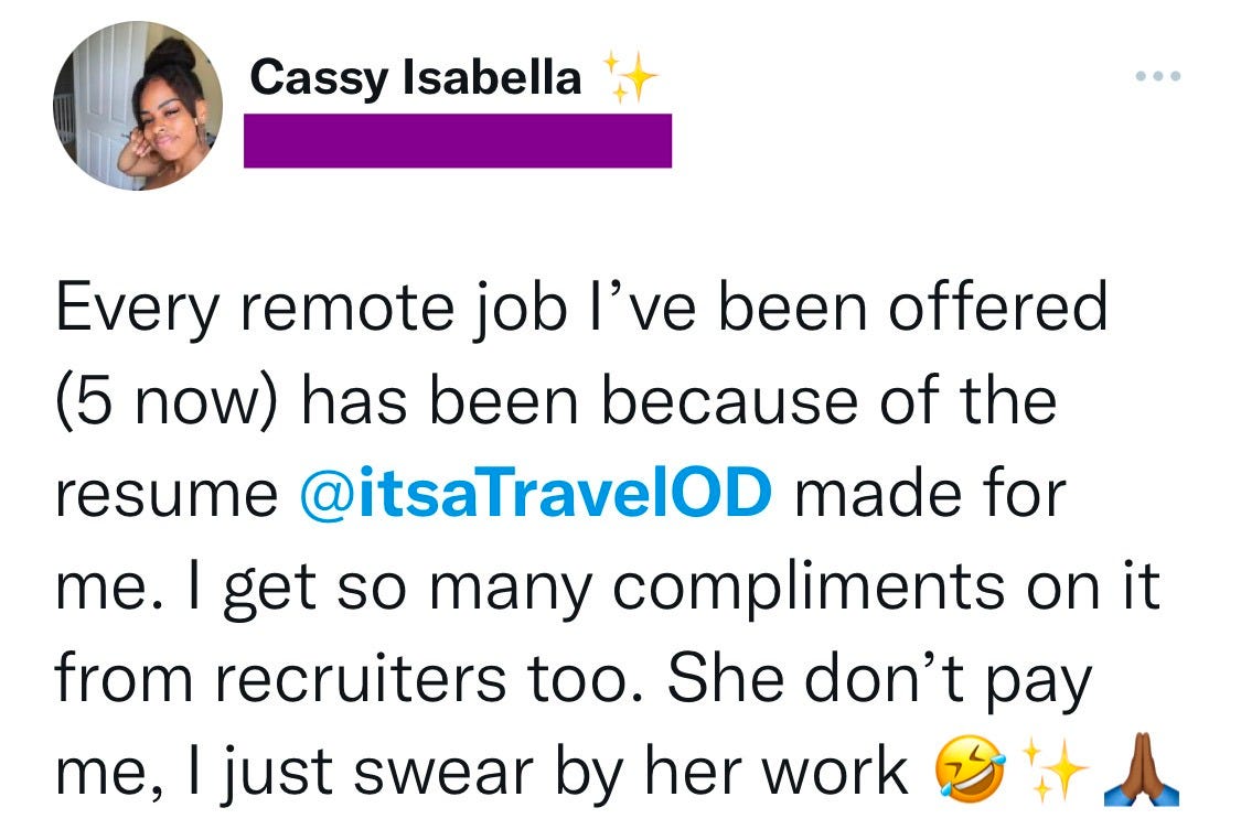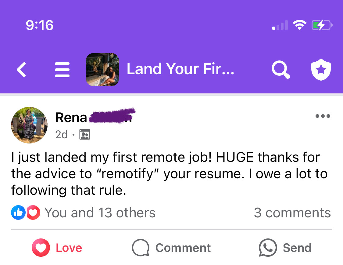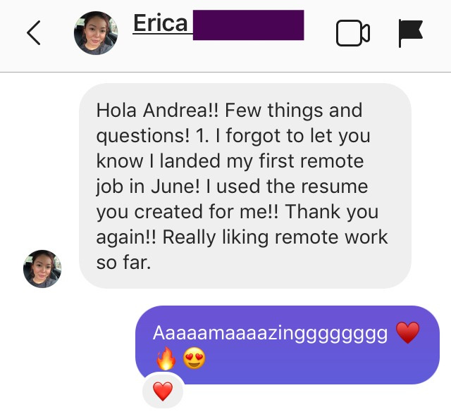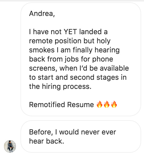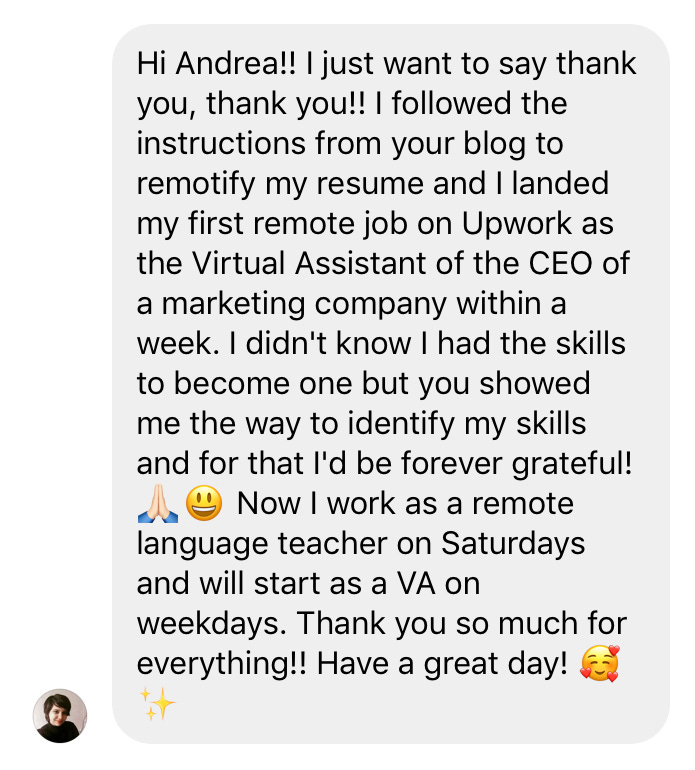 And she got her first remote opportunity thanks to the resources I share to help you remotify your resume like this article and this video training.