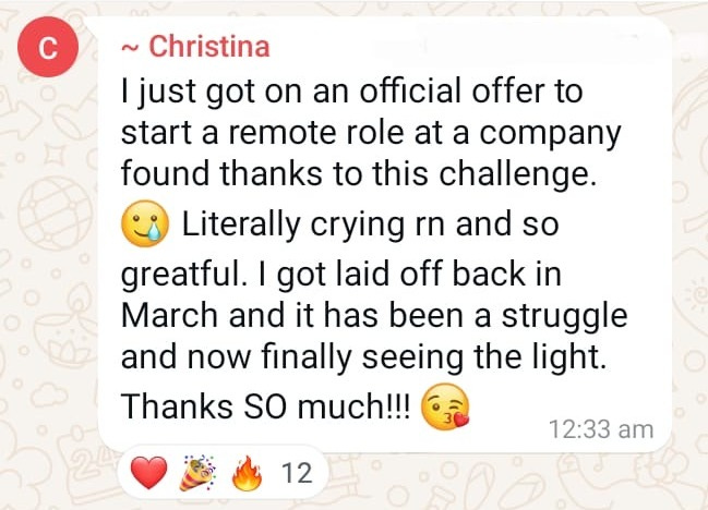 Got a remote job 3 months after participating in my 5-day challenge on how to find remote jobs hiring worldwide