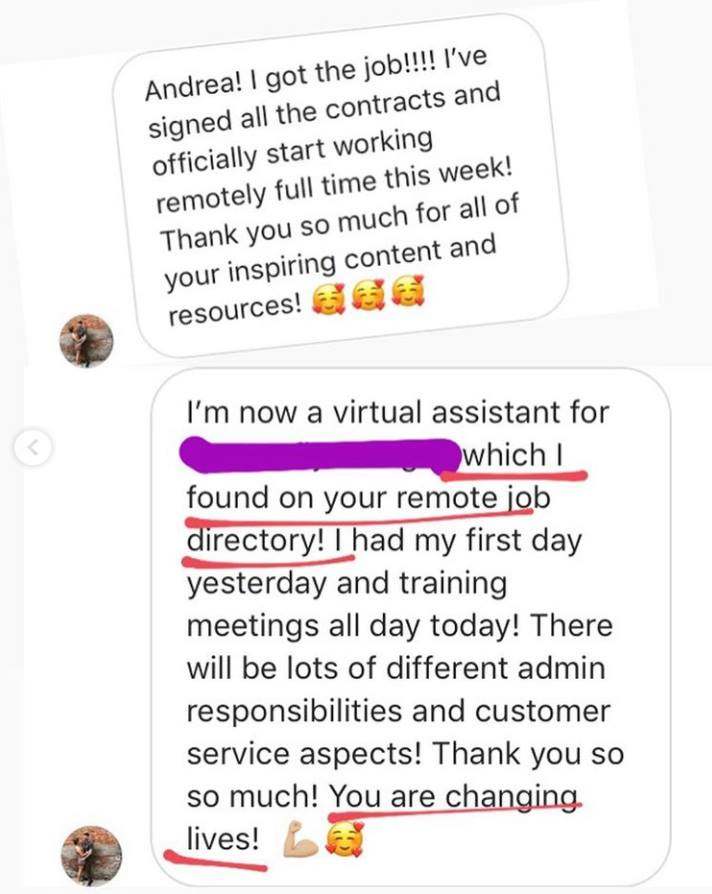 And she joined my full course ‘Land Your First Remote Job’ after doing some research & finding out I was legit. That first remote job was the starting point for her realizing how many opportunities you have once you start working remotely.