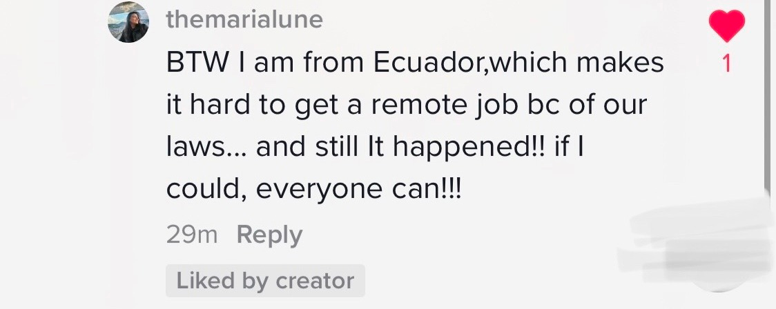 41- Maria from Ecuador used my free remote job directory
