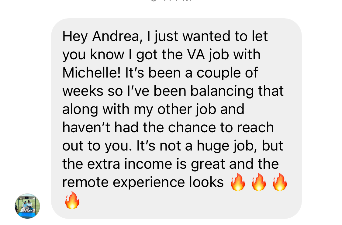 And secured one of the opportunities I shared exclusively with course members— which was a great way to start having an online income while getting remote experience.